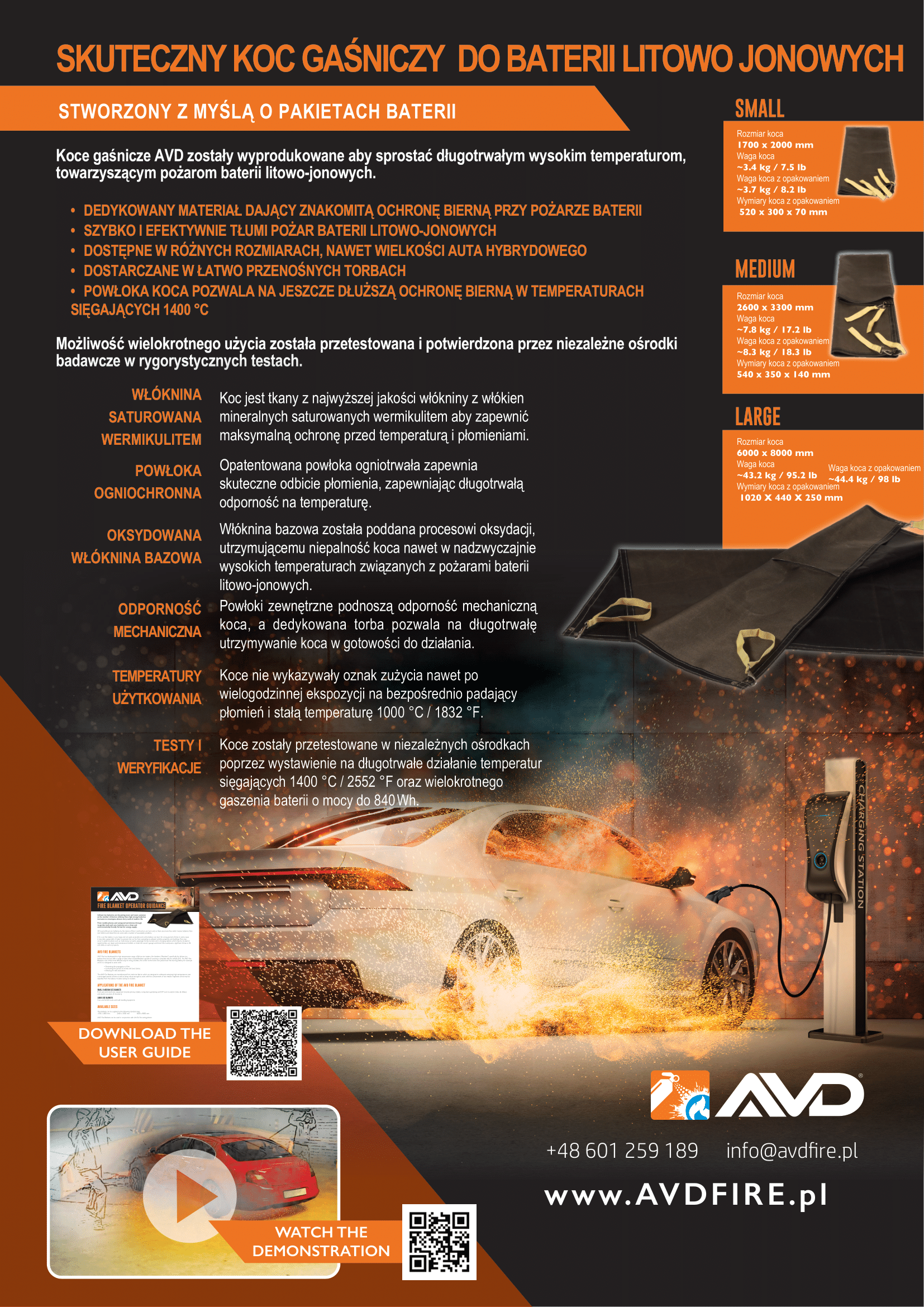 Dostępny u nas koc gaśniczy to produkt wykonany z materiałów opartych o szklane włókna krzemionkowe, które dodatkowo zostały pokryte mineralną dyspersją wermikulitową oraz warstwą silikonu. Przemyślane wykonanie, w tym dodatkowe funkcje ochronne, przekłada się na wysoką skuteczność koca gaśniczego w gaszeniu pożarów baterii litowo-jonowych. Płachta gaśnicza szybko odcina dostęp powietrza, a jednocześnie ogranicza emisję toksyn oraz dymu. Akcesorium jest lekkie i łatwe w przenoszeniu i może być stosowane również zapobiegawczo do okrycia przedmiotu, w przypadku którego istnieje ryzyko wystąpienia pożaru.